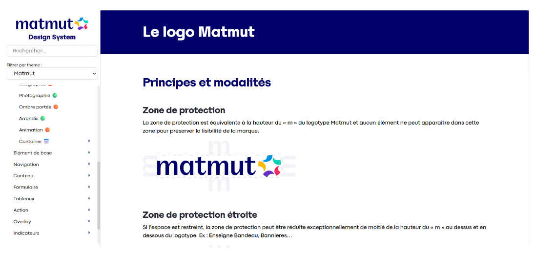 Exemple de page du design system décrivant l’utilisation correcte du logo.