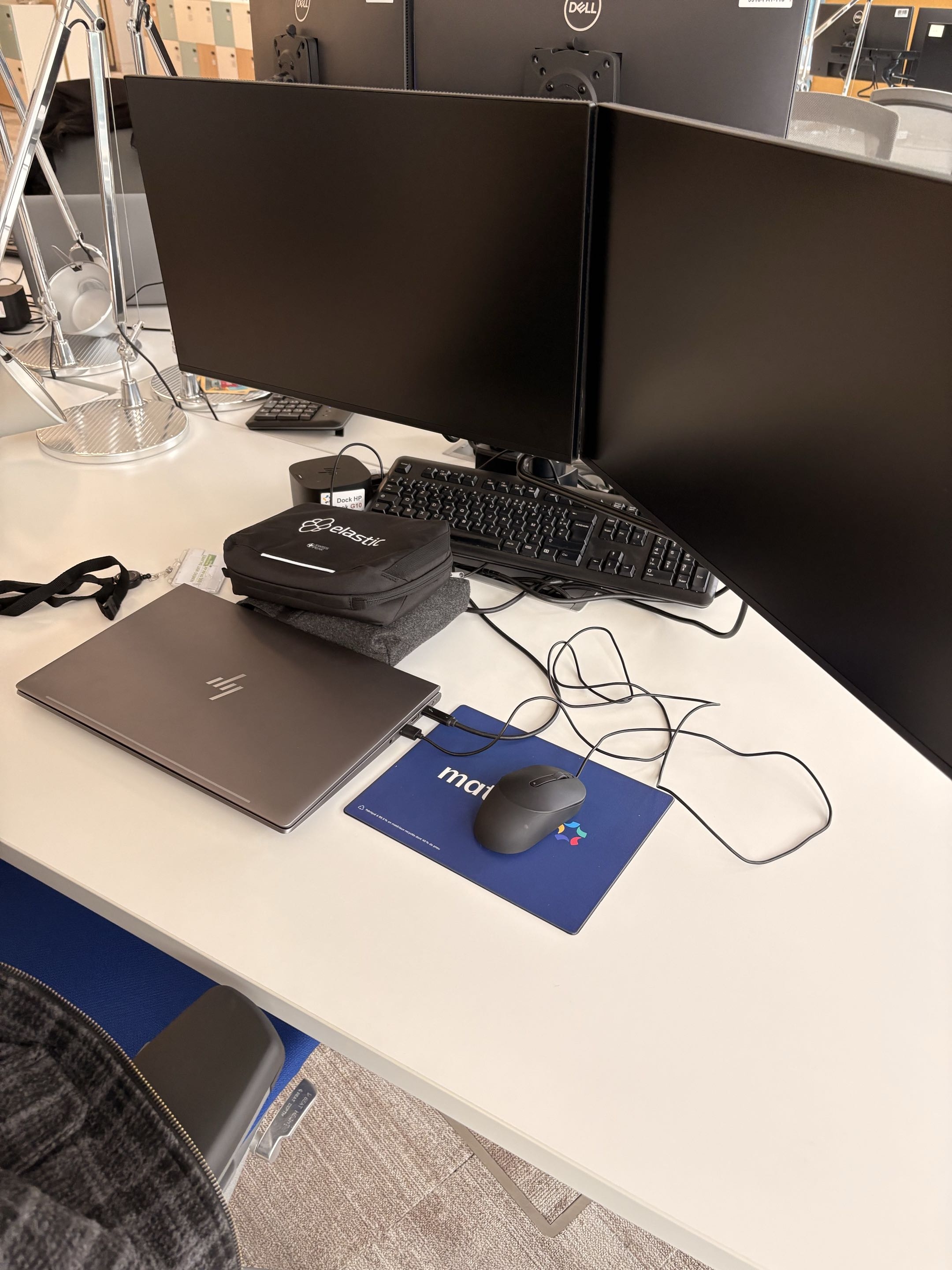 J’ai travaillé dans un open space avec placement libre. Tout le matériel était fourni (pc, écrans, périphériques, …).
